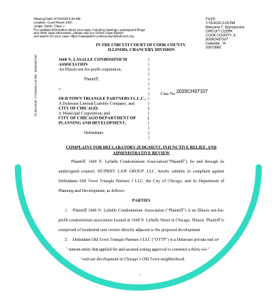 A lawsuit was filed against the developer, the City of Chicago and its planning department. If allowed to proceed, Old Town Canvas will irreversibly damage the character of the neighborhood, overburden local infrastructure, and set a dangerous precedent for high-density development in our community.